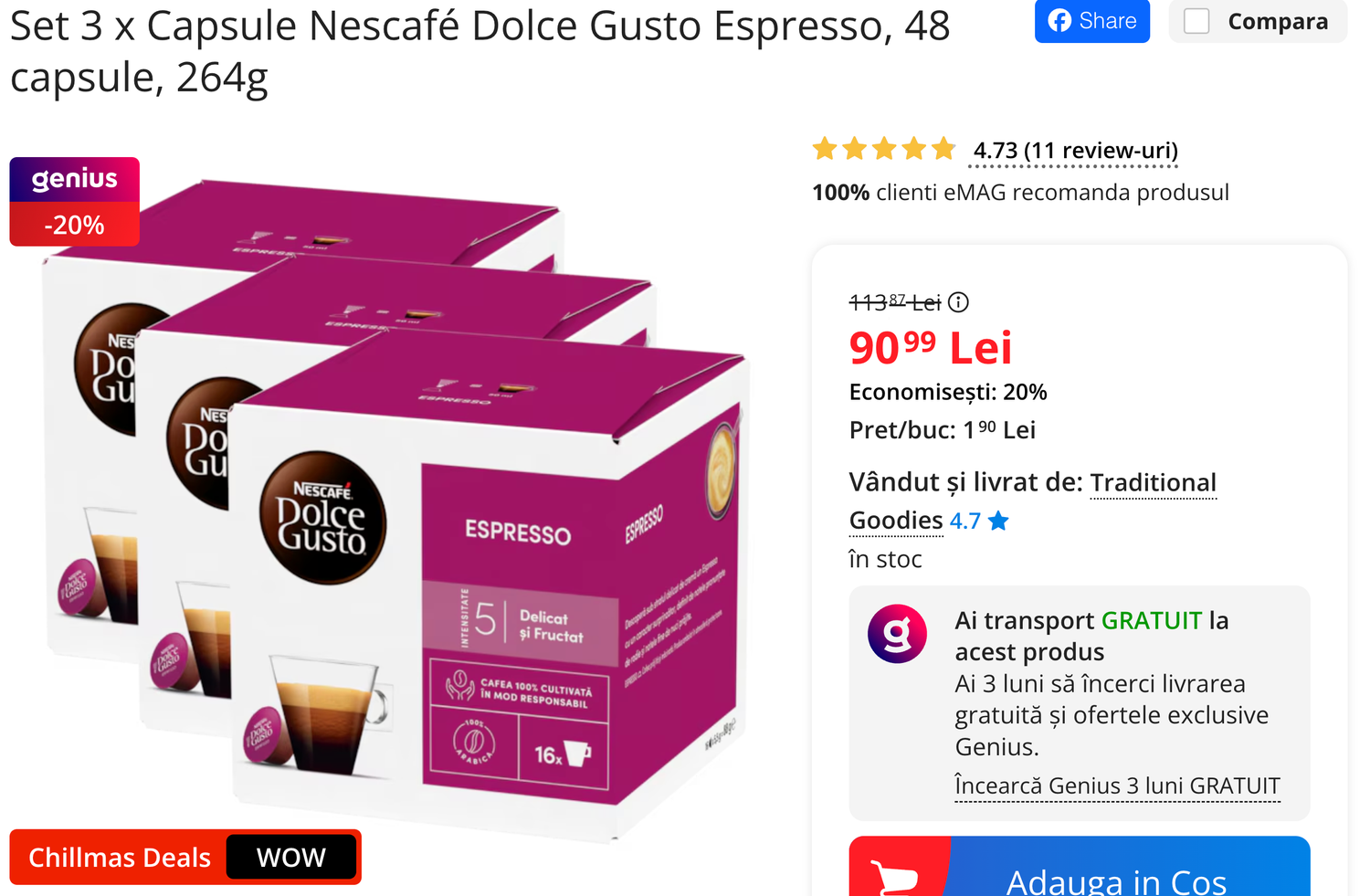 Espresso premium oricand si oriunde cu 1,83 lei per cafea